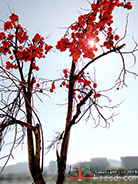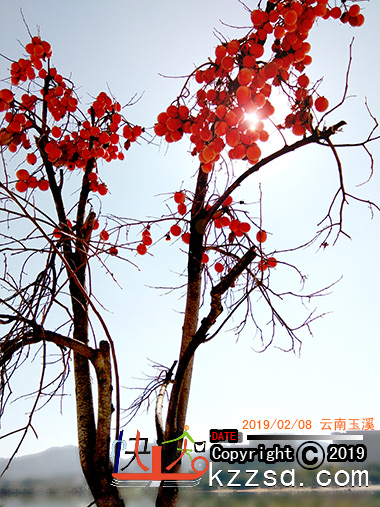 《光透红柿子》(黄友志):黑黑低头老无子,白白向上金镀面;团团红柿攀枝头,圆圆皮光映日红。